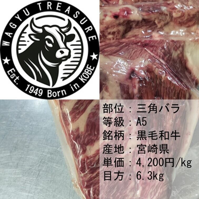 【現品】三角バラ 黒毛和牛メス 宮崎県産 A5 5.7g 4,200円/kg