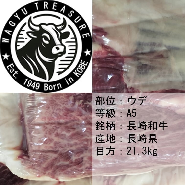 【現品】ウデ(トウガラシ含む) 黒毛和牛メス 長崎県産 A5 21.3kg 3,700円/kg