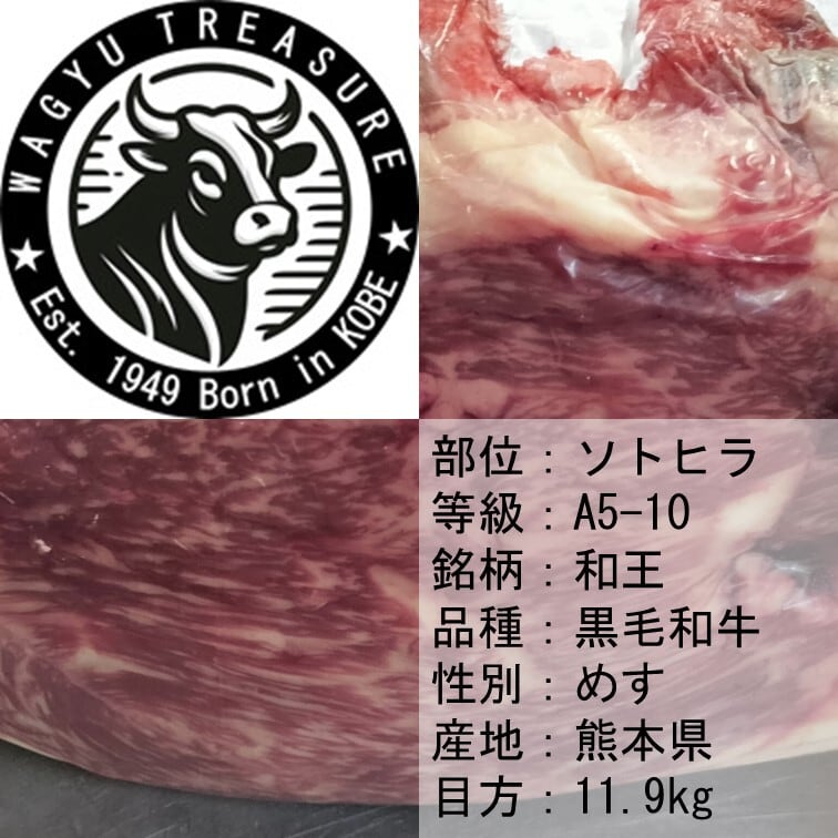ソトヒラ A5-10 和王 黒毛和牛メス28ヶ月 熊本県産 11.9kg 3,000円/kg